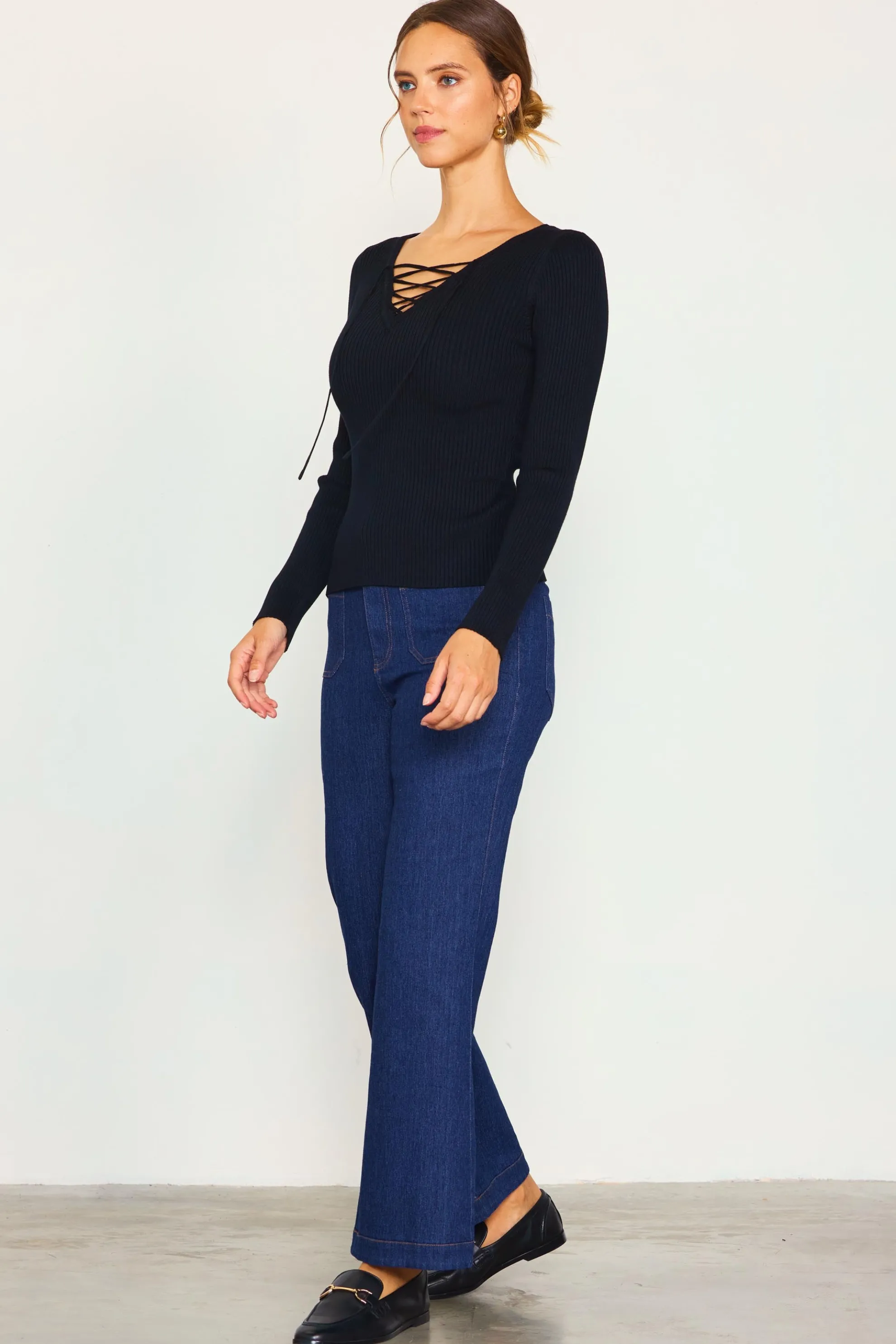 Laced Up Long Sleeve Knit Top