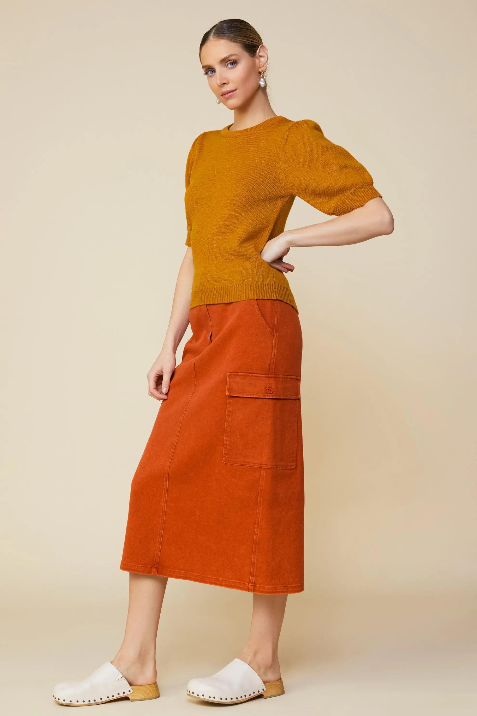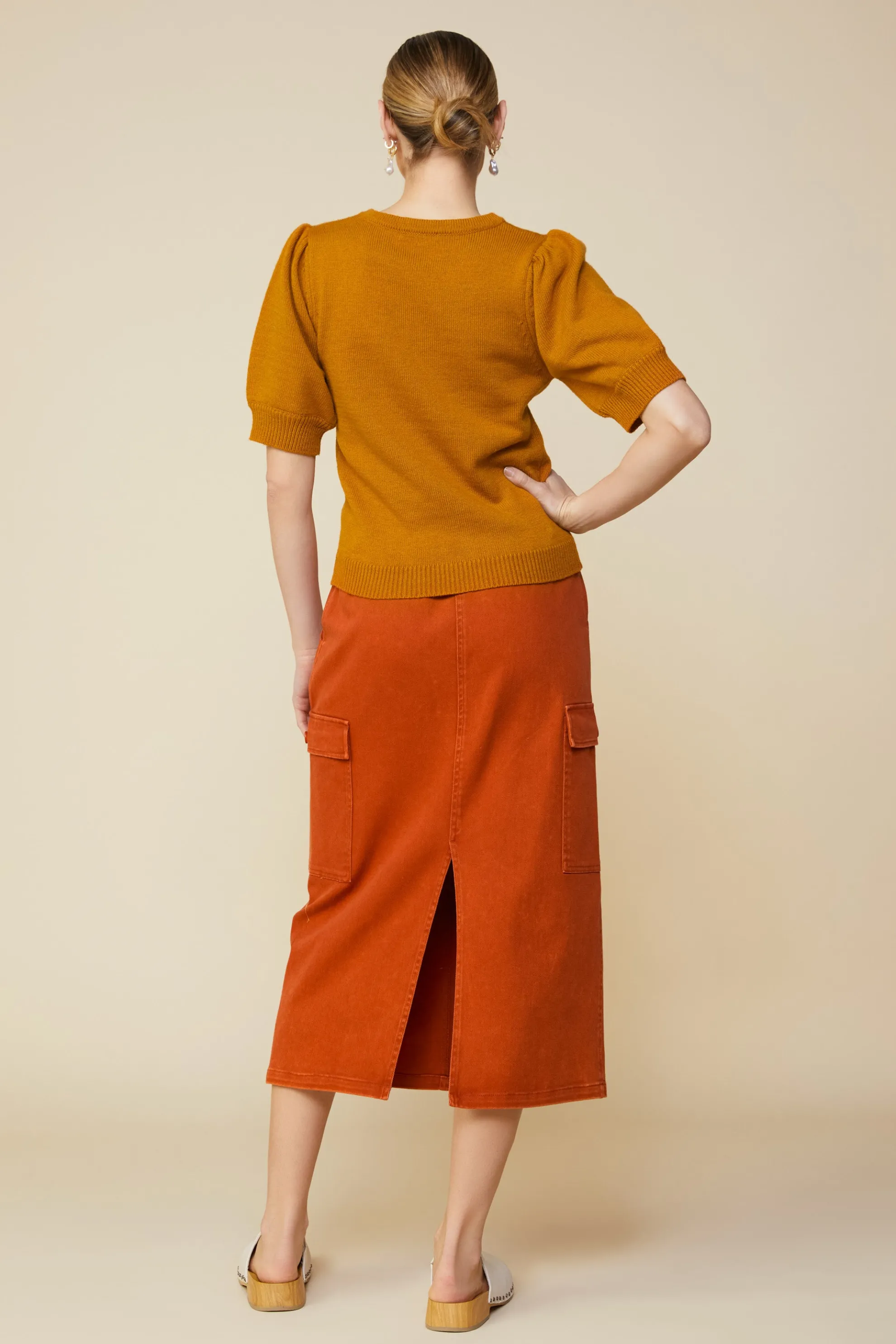 Short puffed sleeves deliver a feminine shape to this soft sweater top. It’s crafted from recycled fibers and pairs effortlessly with your go-to denim or a tailored pair of trousers.