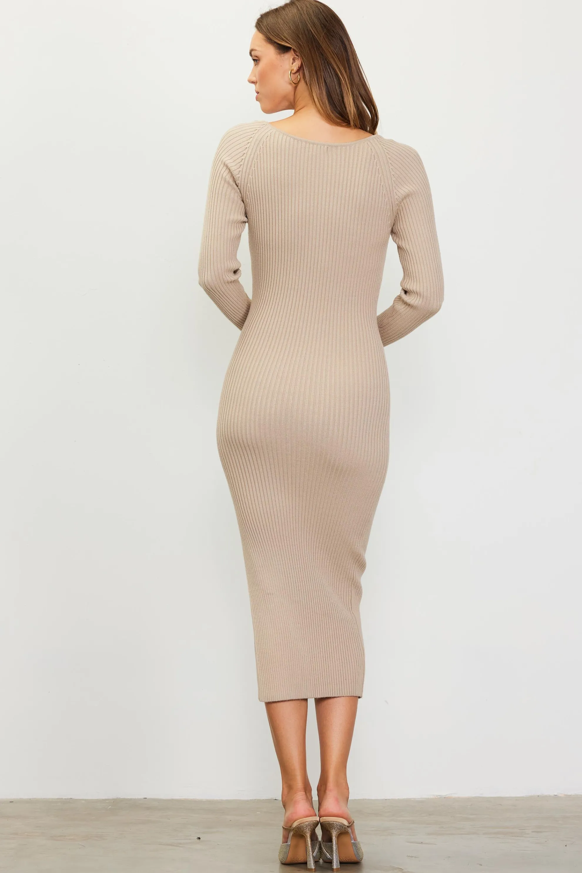 With its sweetheart neckline and halter straps that tie at the back, this ribbed sweater dress is sexy and comfortable to wear. The long-sleeve style hugs the figure and lands at a shin-skimming hem that’s slit at the side for an alluring finish.