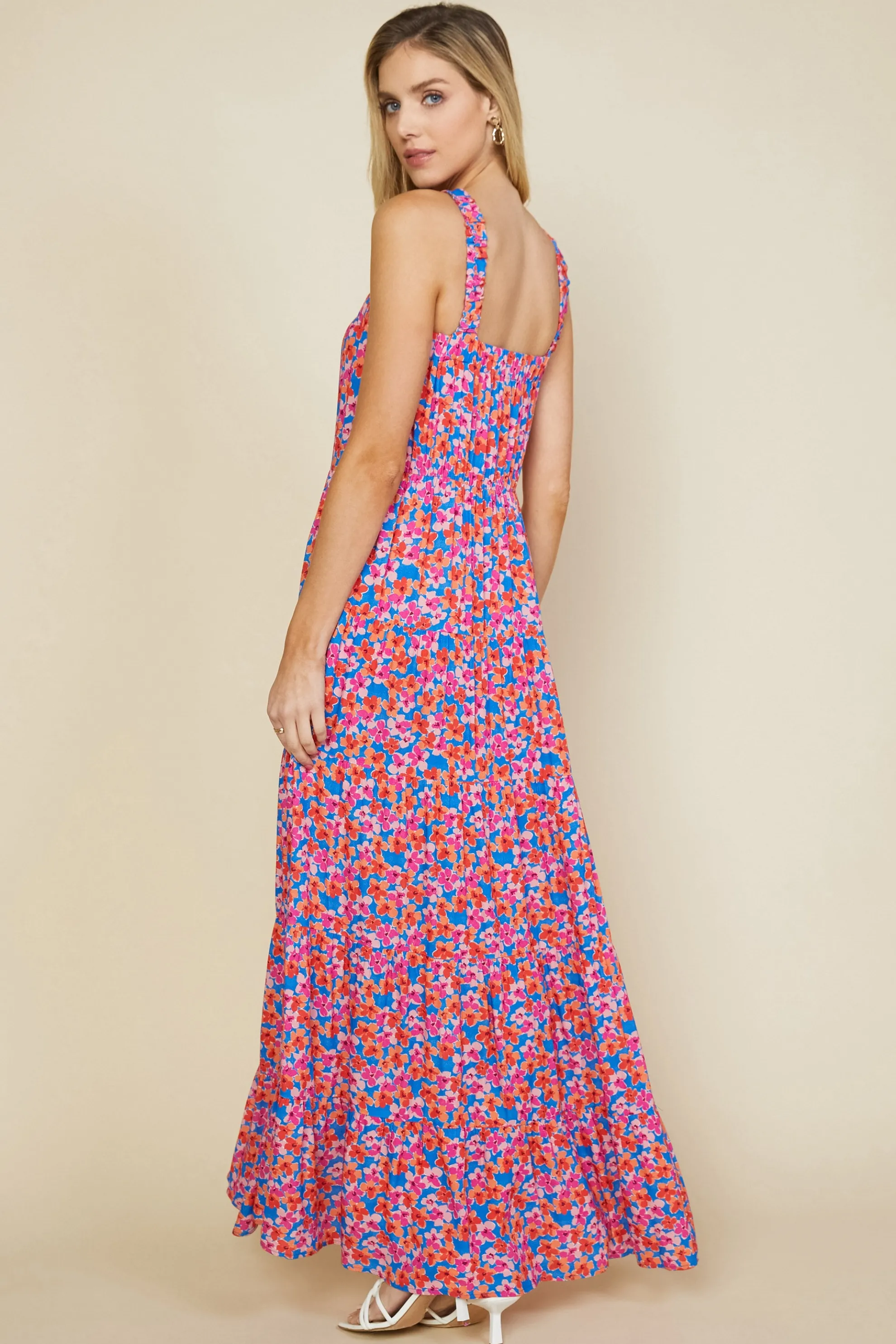 Be ready to fall in love with this floral-print halter dress. It’s cut to flatter, designed with a fitted yet comfortable bodice, shirred straps, and a flowy tiered skirt. Instant favorite.