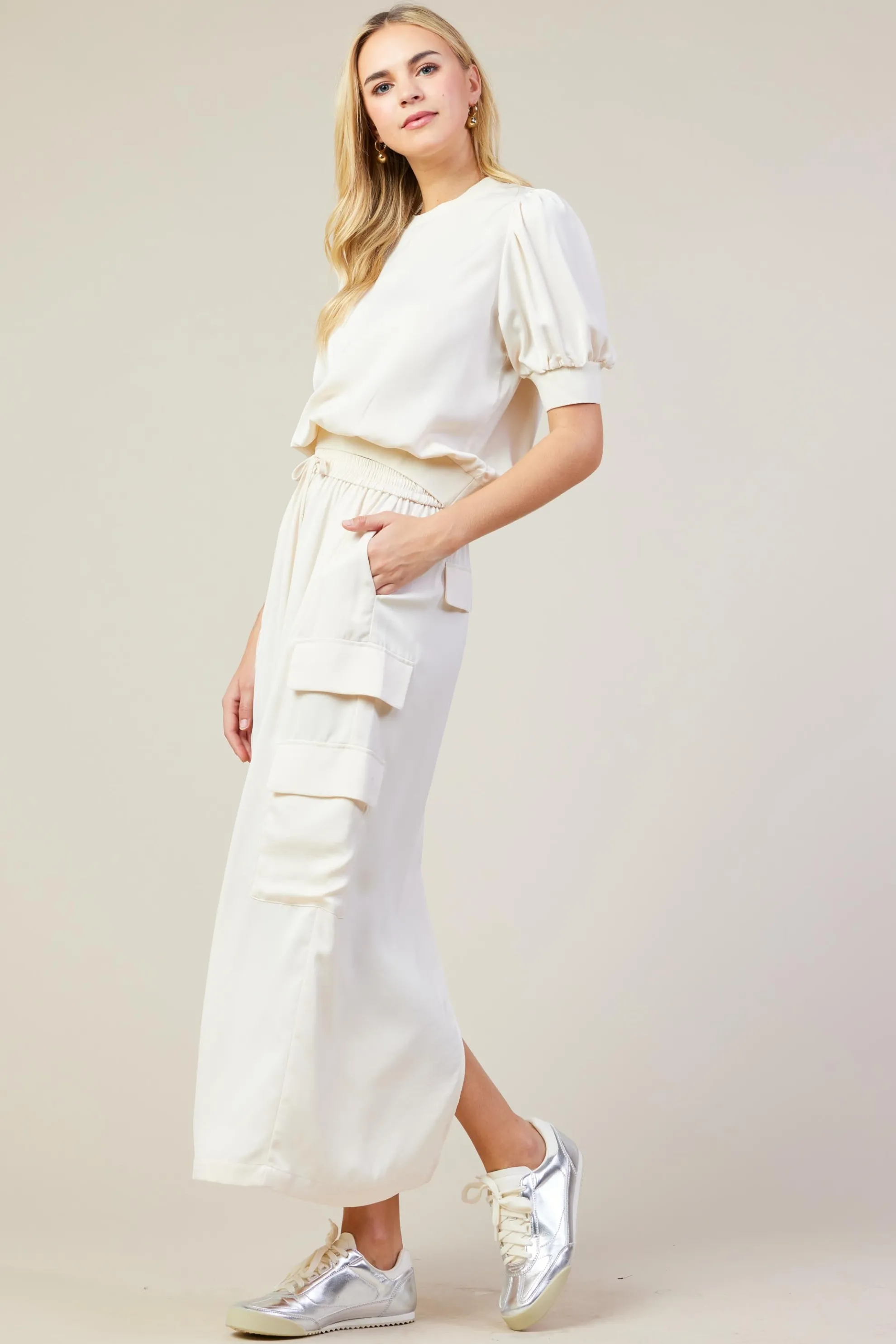 Add a little more volume to your ensembles with this bubble-sleeve top. The subtly lustrous style has a relaxed, airy silhouette that’s drawn in by banded rib trim.