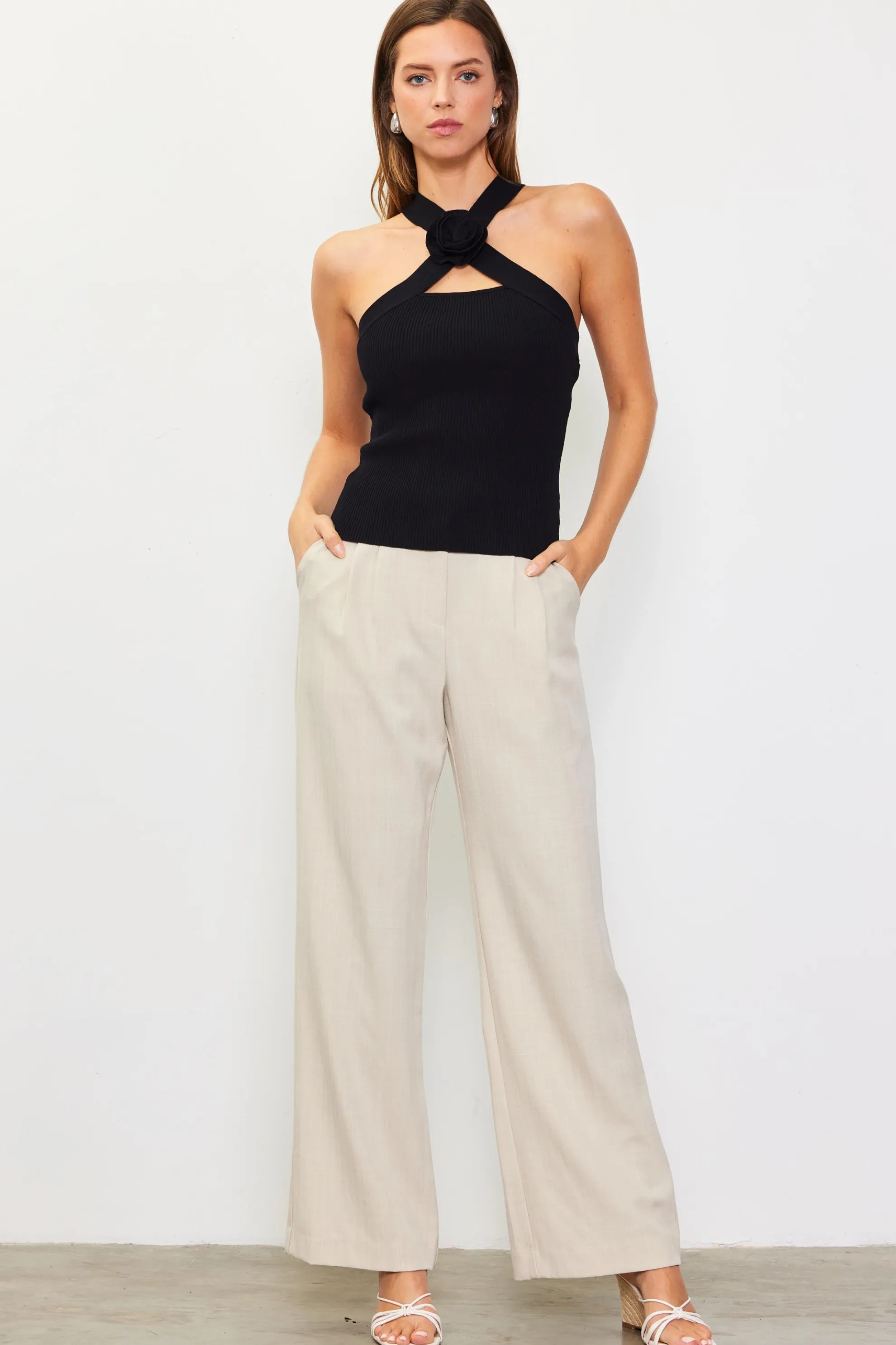Made from a comfortable rib knit, this figure-hugging halter top has crisscross straps decorated with a rosette at the front. Dress it up, dress it down — either way, it’s sure to get compliments.