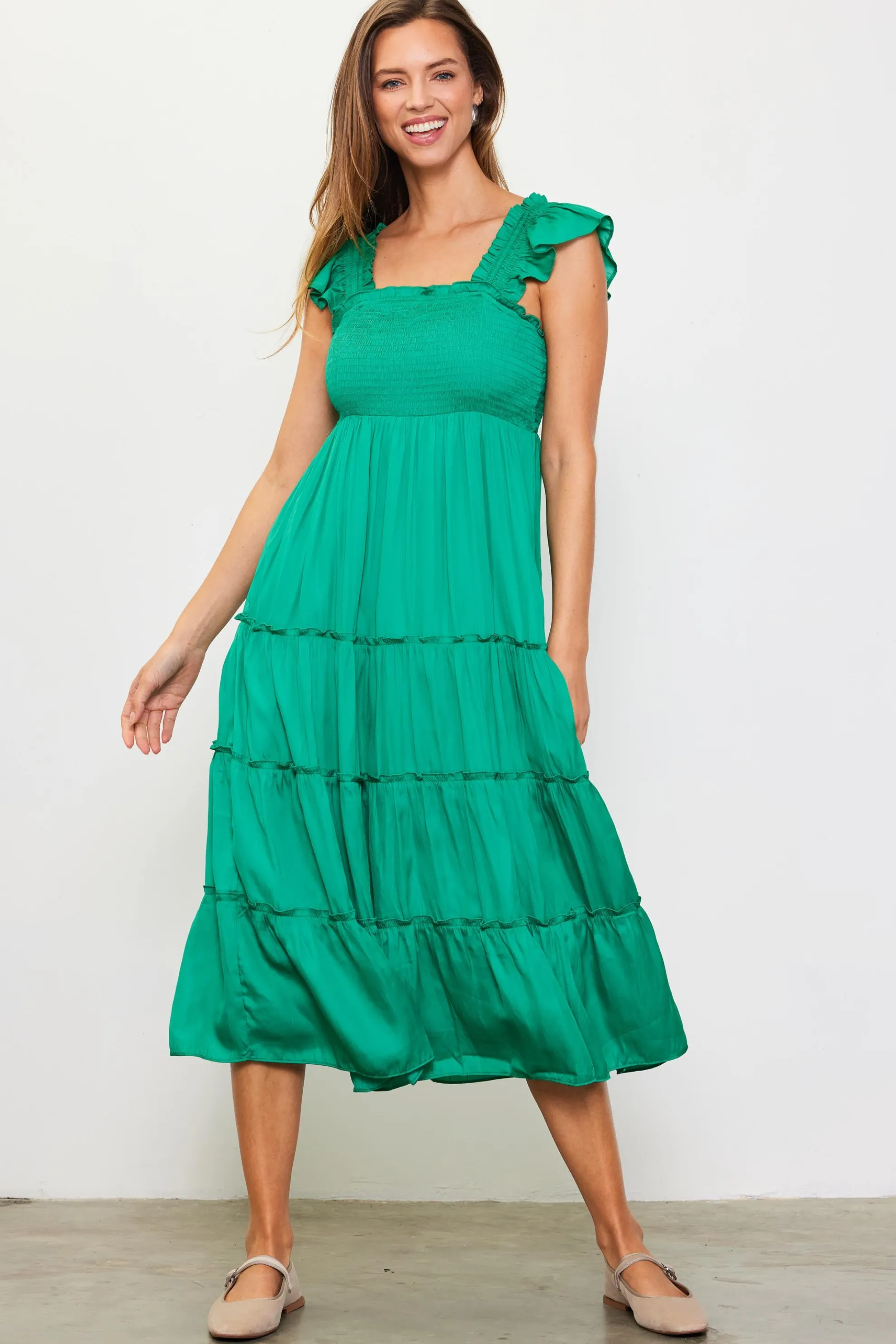 There’s so much to love about this easy-wearing midi dress. Kelly Green color, figure-hugging smocked bodice, flowy skirt, those sweet ruffled cap sleeves—it all adds up to a look that you’ll turn to again and again.