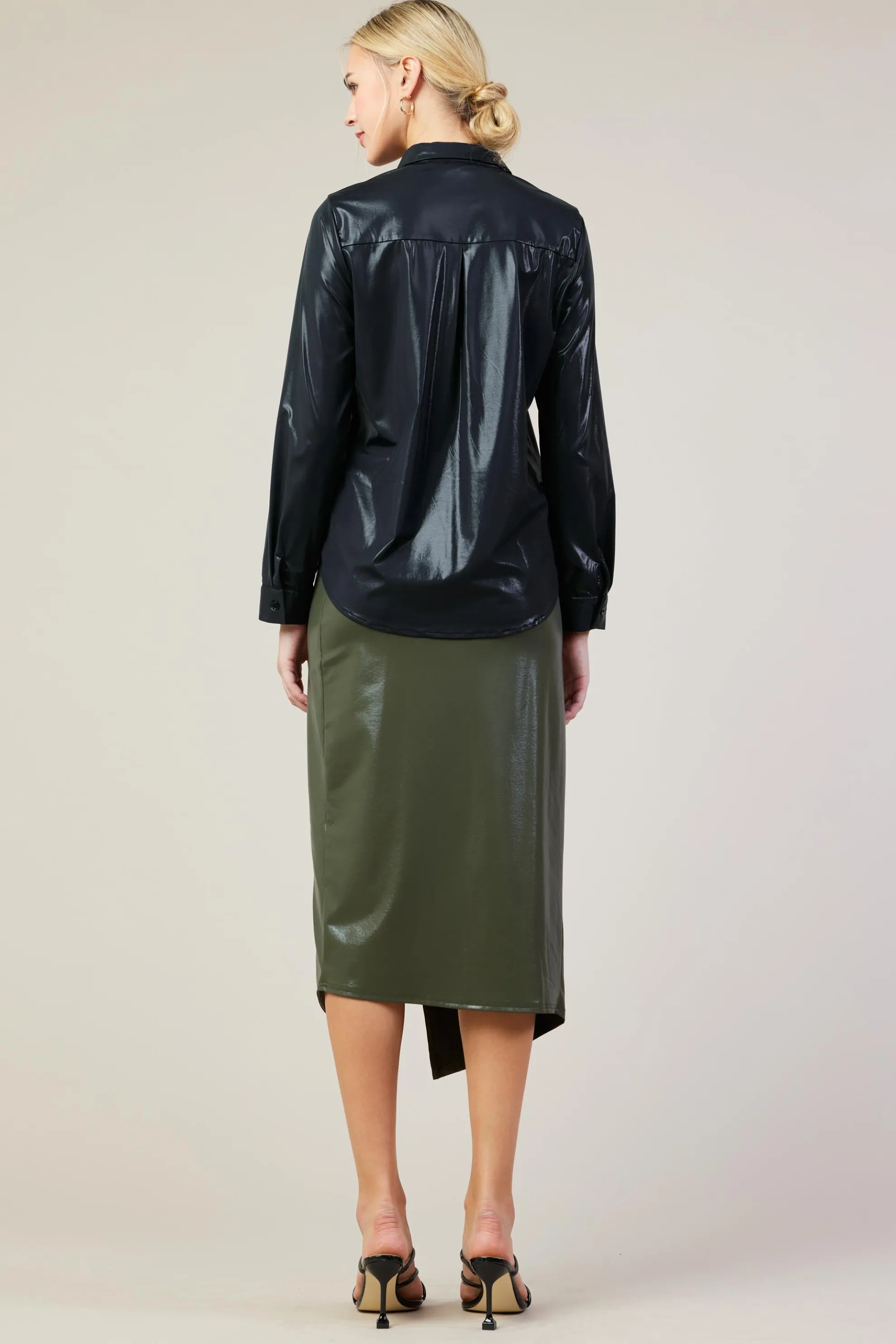 An occasion-ready update on the classic button-down shirt. Aglow with a lustrous sheen, it’s got a pointed collar, shirttail hem, and long sleeves with barrel cuffs. A single inverted pleat creates movement at the back. Pair yours with our matching midi skirt or add jeans for casual contrast.