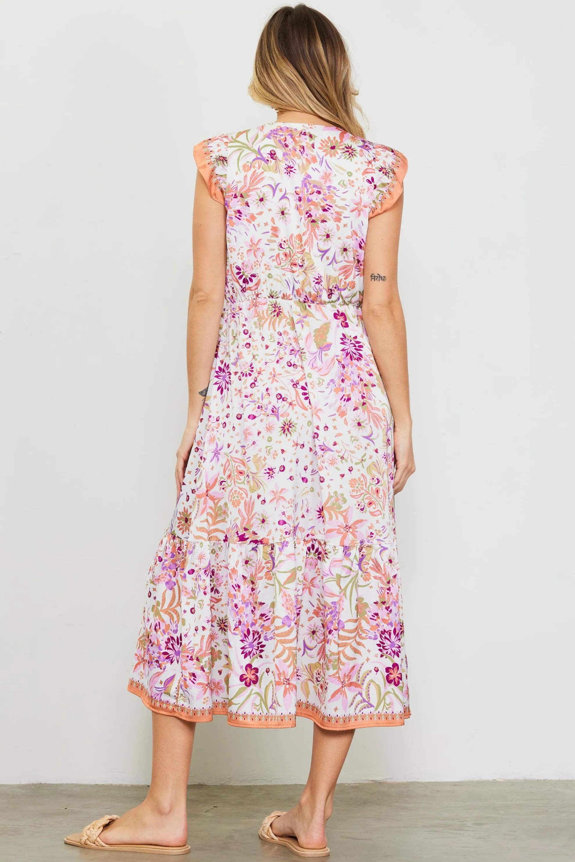 Magnolia Border Print Flutter Sleeve Dress