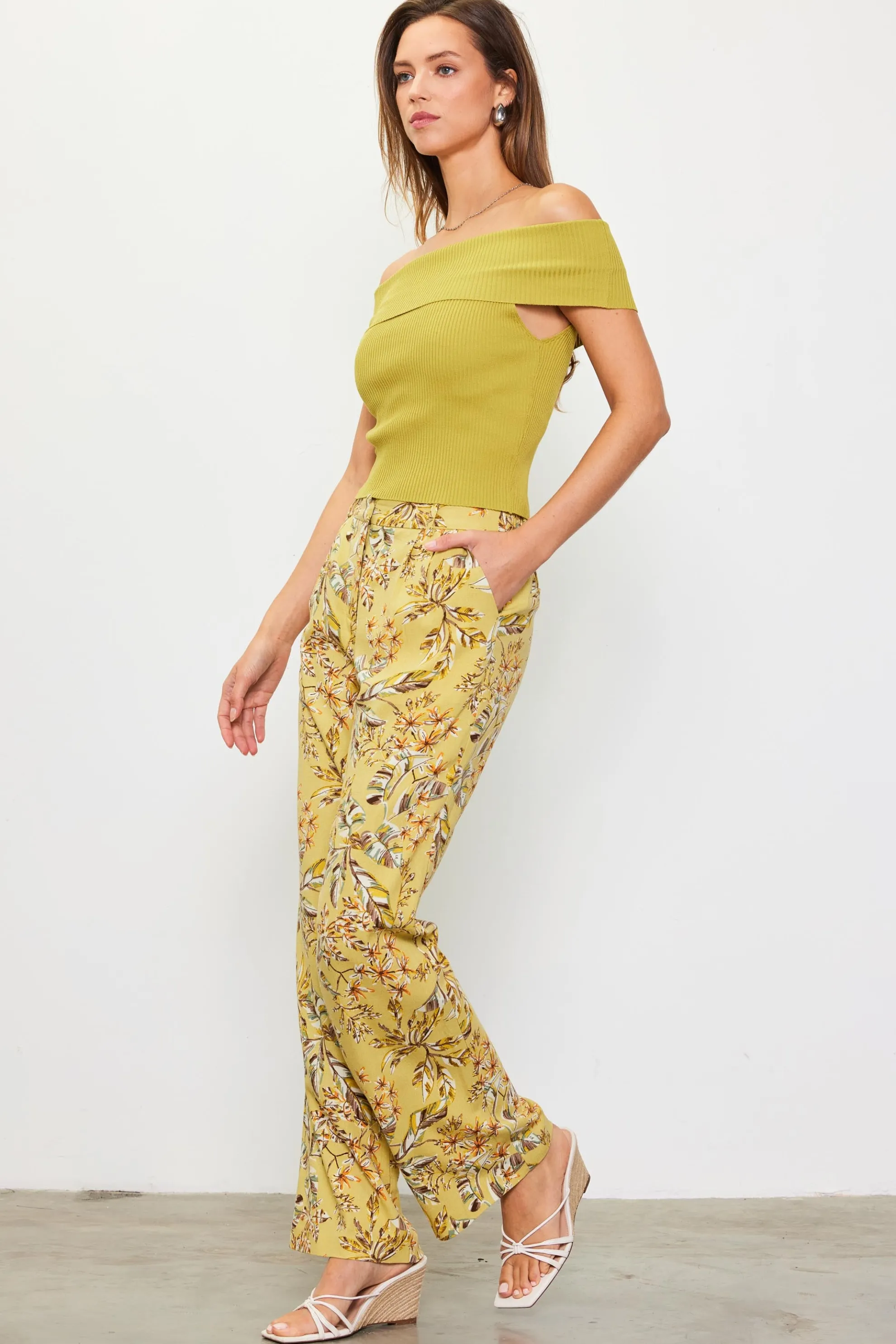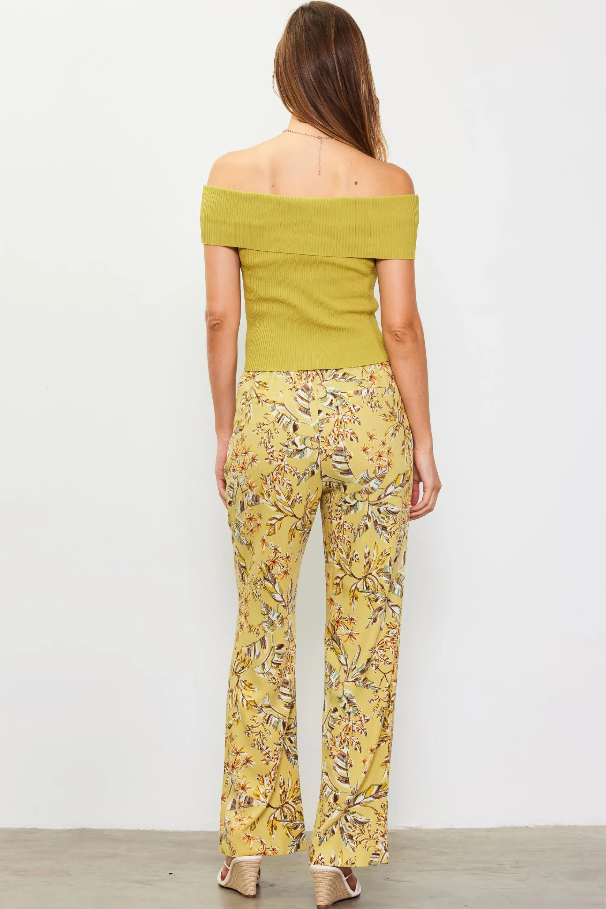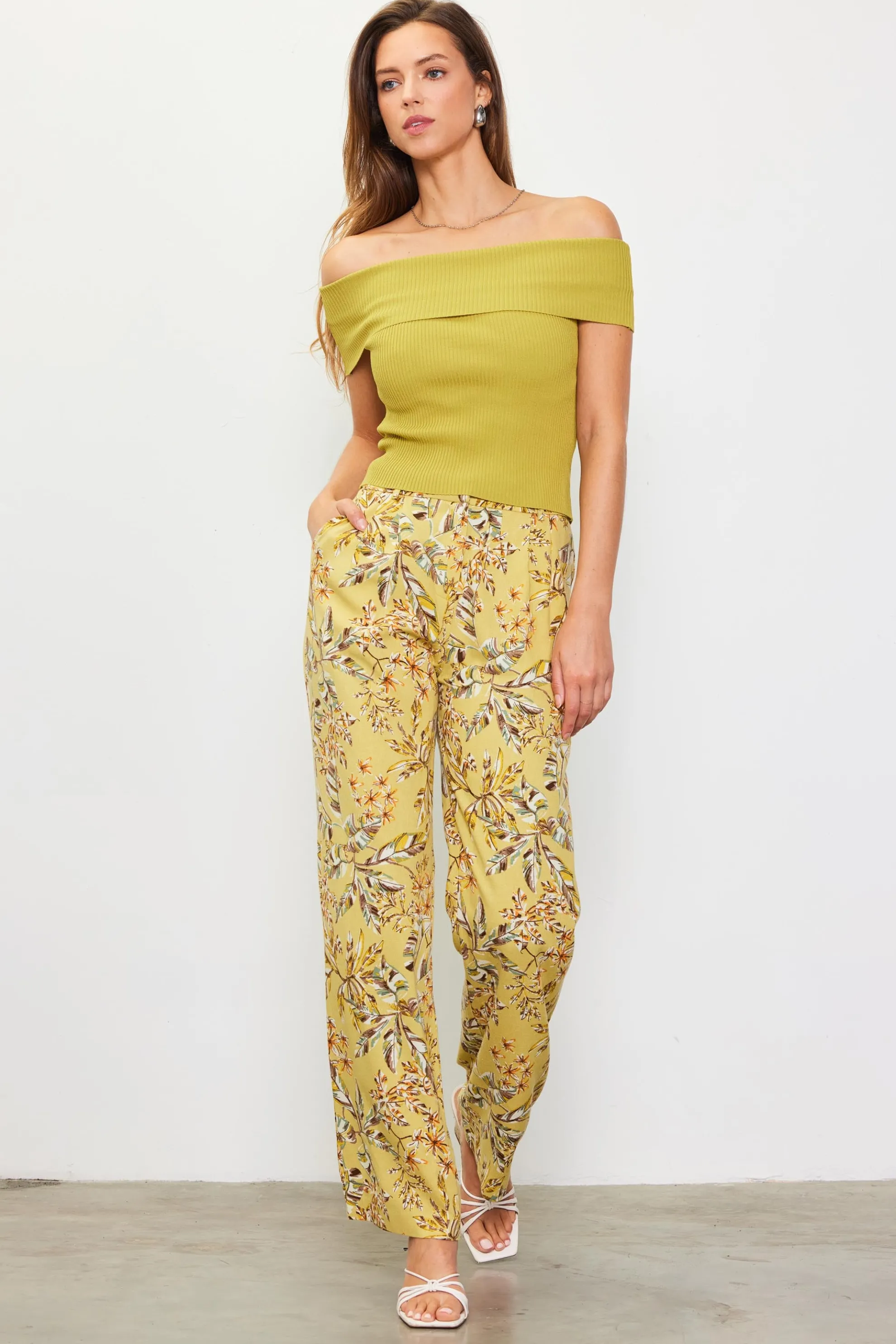 Defined by foldover styling, this off-shoulder top hugs the figure in a soft rib knit. A simple, feminine piece that can be styled with jeans, wide-leg trousers, skirts, anything.