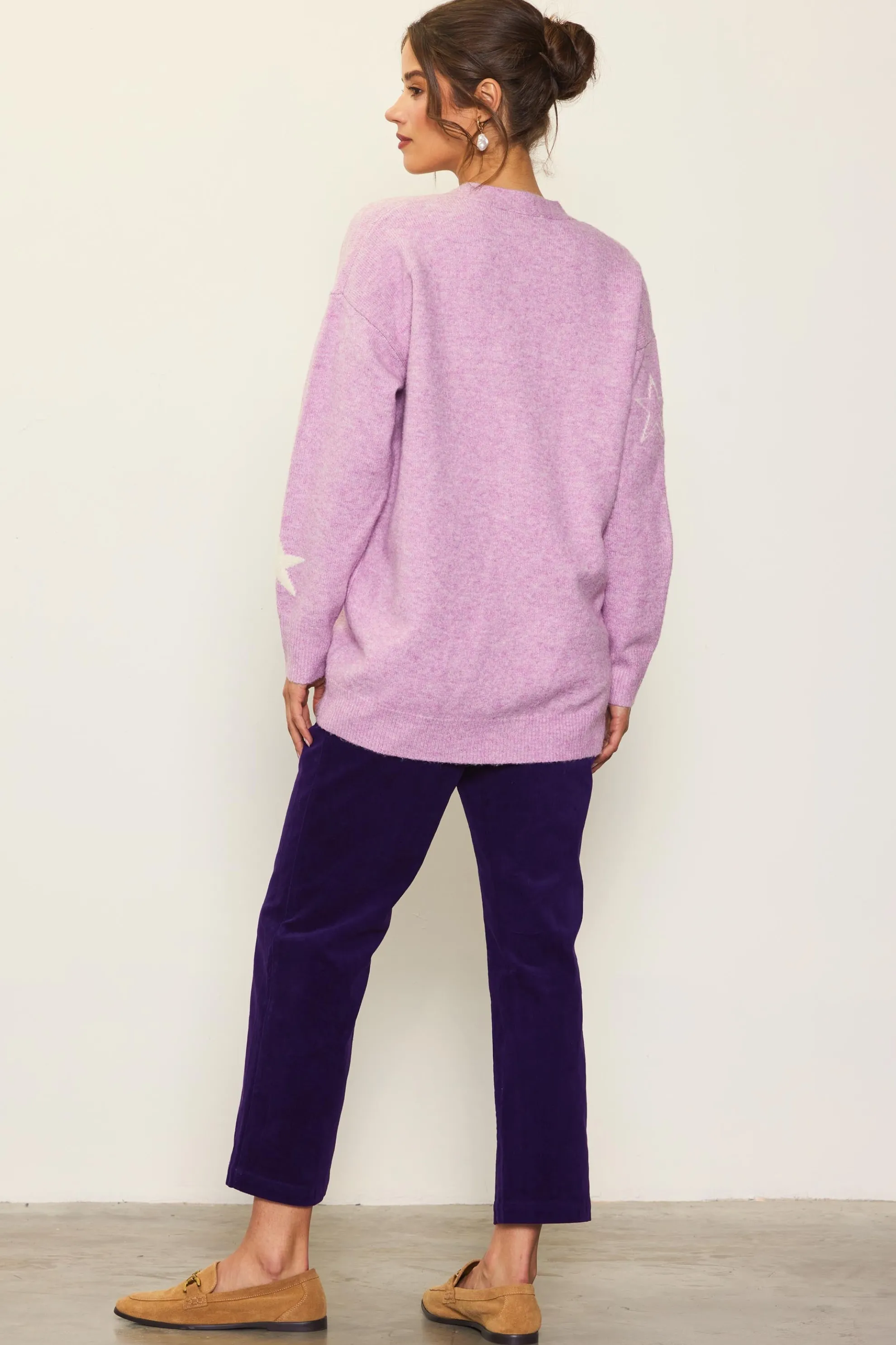 This cozy cardigan is intarsia-knitted with a whimsical star pattern. Spun from mélange yarns for a heathered character, it’s got a relaxed silhouette with long sleeves and buttons at the front. A playful addition to your sweater collection this season.