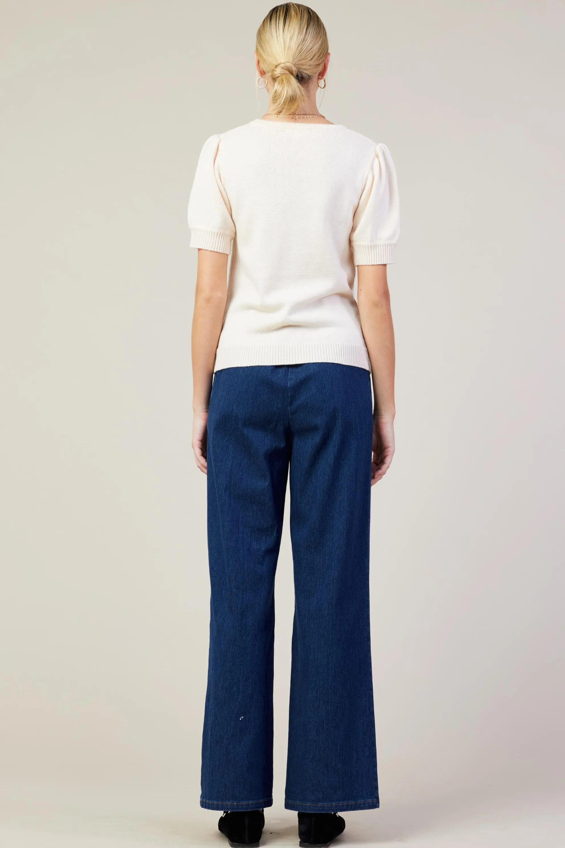 Short puffed sleeves deliver a feminine shape to this soft sweater top. It’s crafted from recycled fibers and pairs effortlessly with your go-to denim or a tailored pair of trousers.